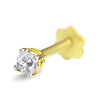 This 18K gold diamond nose pin is refined and shiny and adds sparkling brilliance to your style. An exquisite work, it’s an ideal choice for women who believes in glamour every day and always.