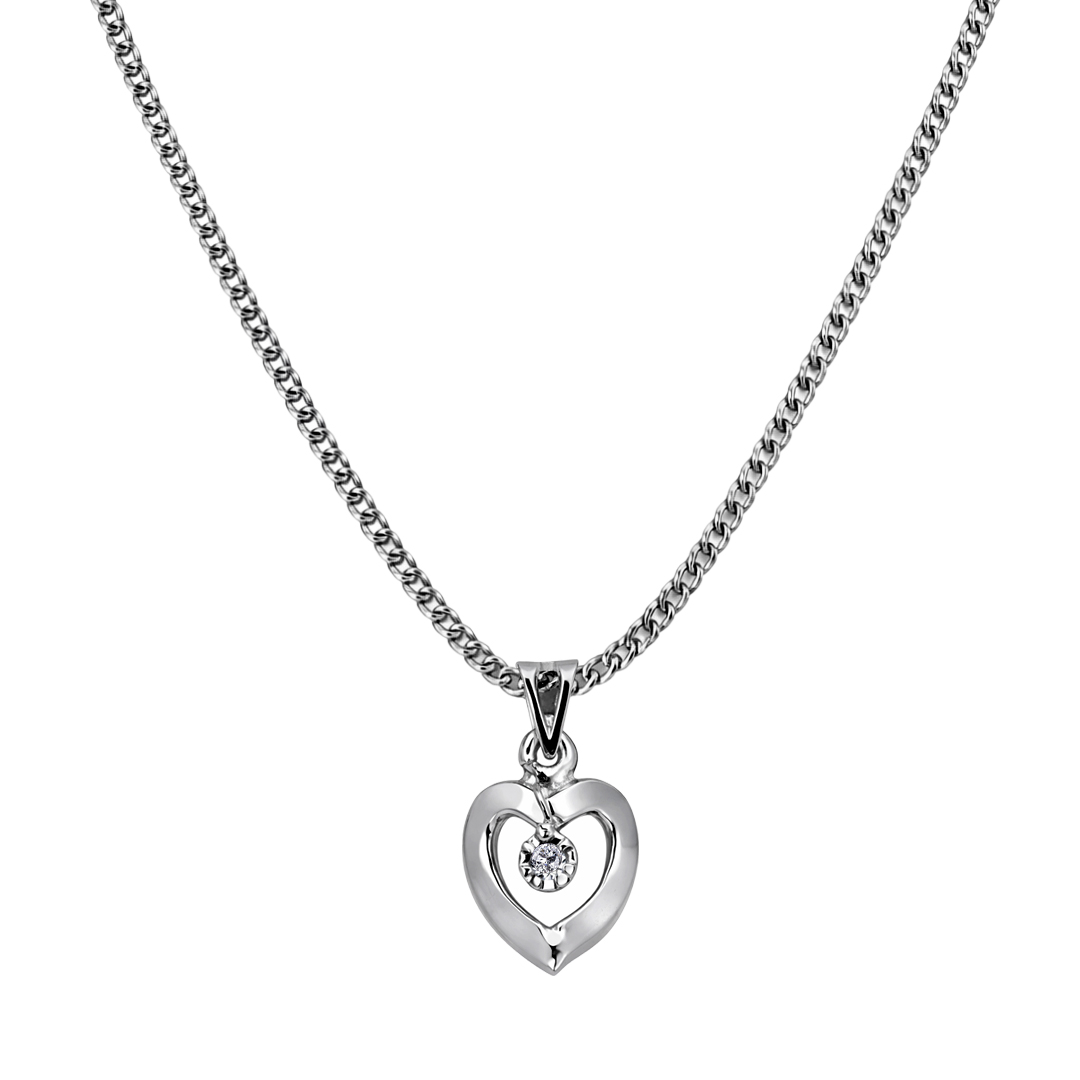 Meticulously designed in polished palladium, this necklace showcases a Valentine heart-inspired pendant set with luminous diamond, expressing timeless romance through a contemporary design language.