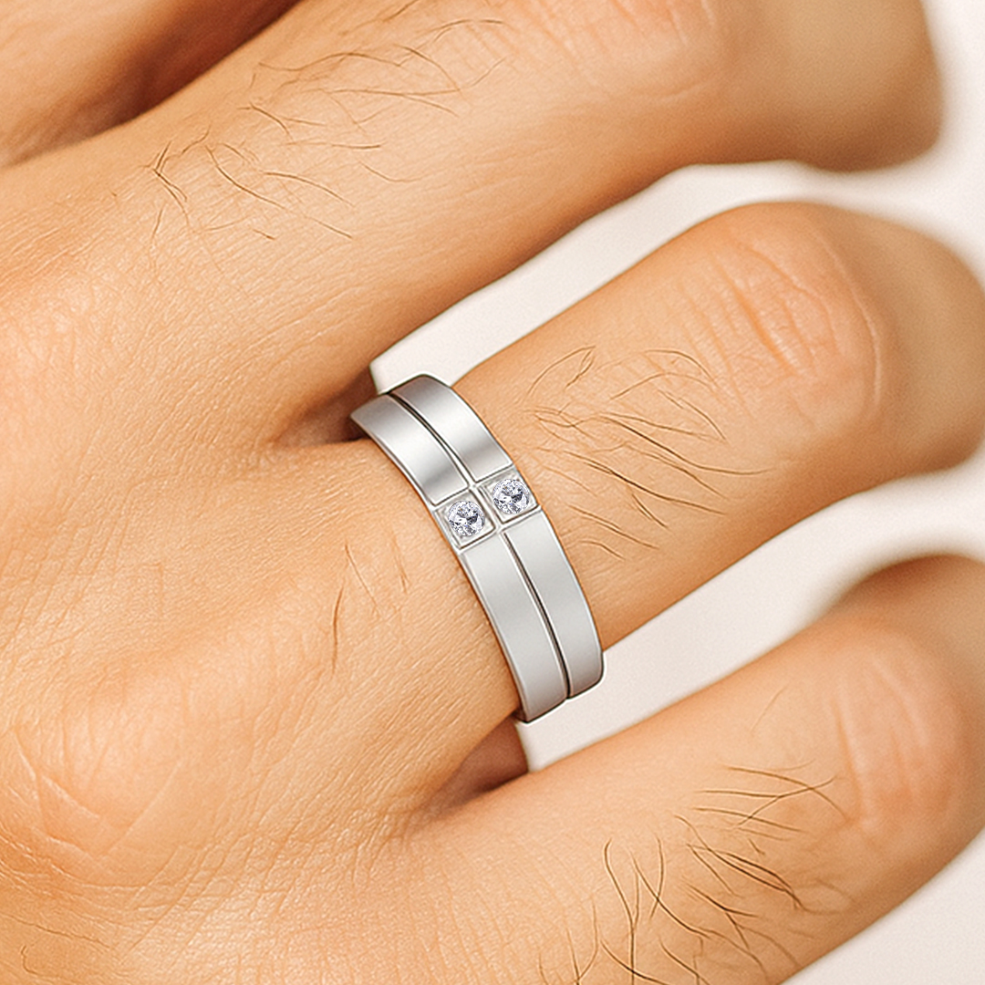 GR-791 epitomizes refinement. The radiating diamond on smooth palladium setting brings grace to this ring and thus making the ring an ideal replica of a timeless fashion.
