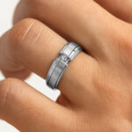 GR-814 features a fine workmanship. Lustrous palladium backdrop incorporates pristine diamond in black ring which represents eternal elegance as well as modernism.