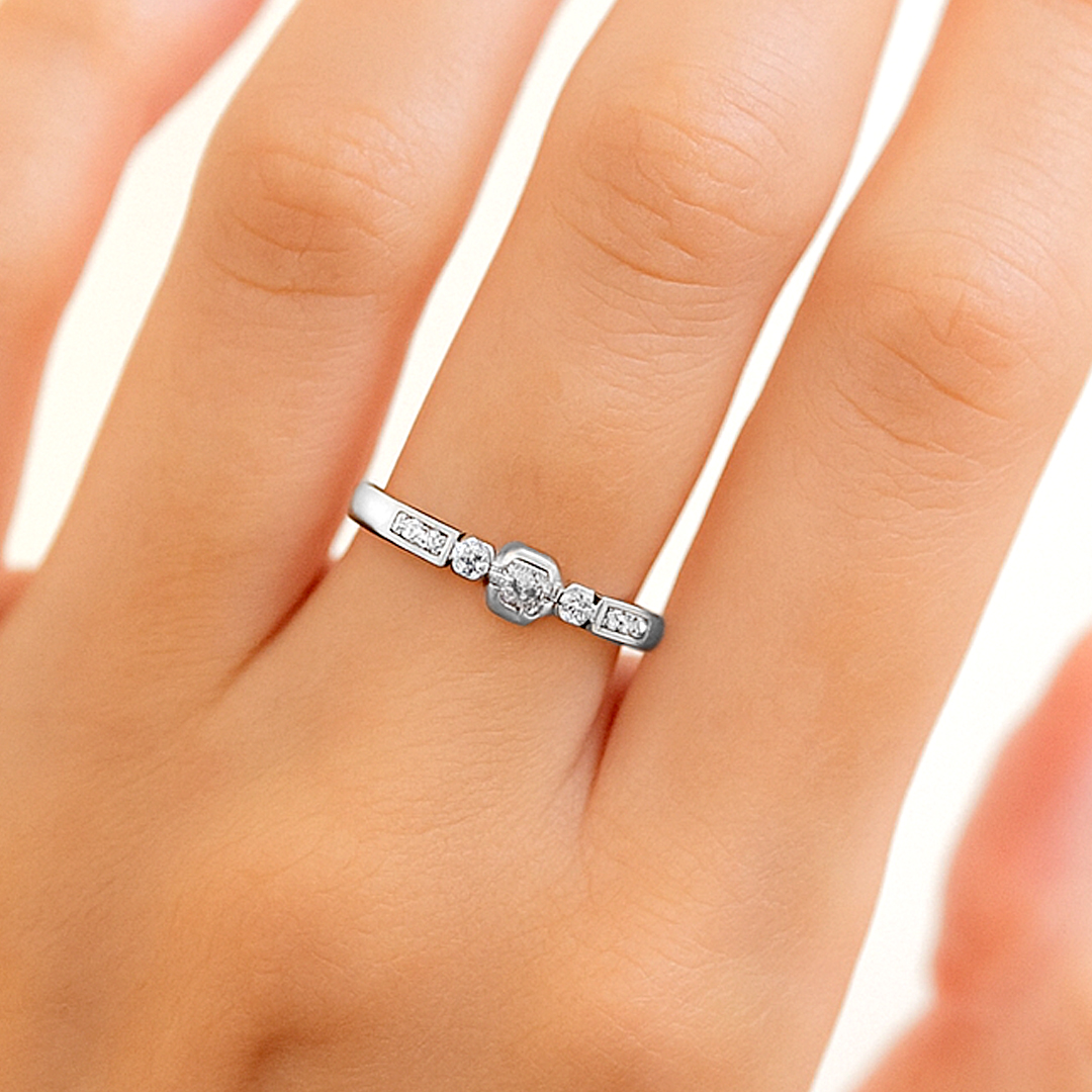 Crafted with precision and care, this Palladium Diamond Ring is a jewel of true distinction. The smooth, polished band flows gracefully beneath dazzling diamonds. A sophisticated choice for women who appreciate understated luxury, it is a design that speaks of elegance without excess.