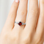 Being a refined brilliance, the Palladium Diamond Ring LR-910 is made to glorify eternal beauty. It has a glittering diamond and Garnet that perfectly match the smooth band of palladium giving it a luxury appearance.